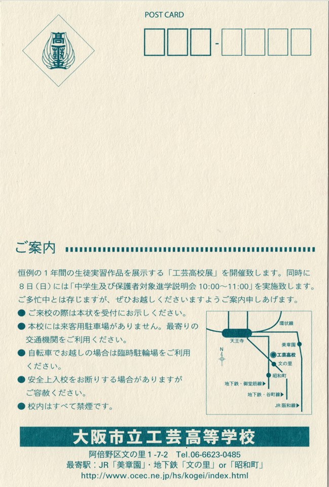 「第67回工芸高校展」の案内はがきの配布が始まりました。