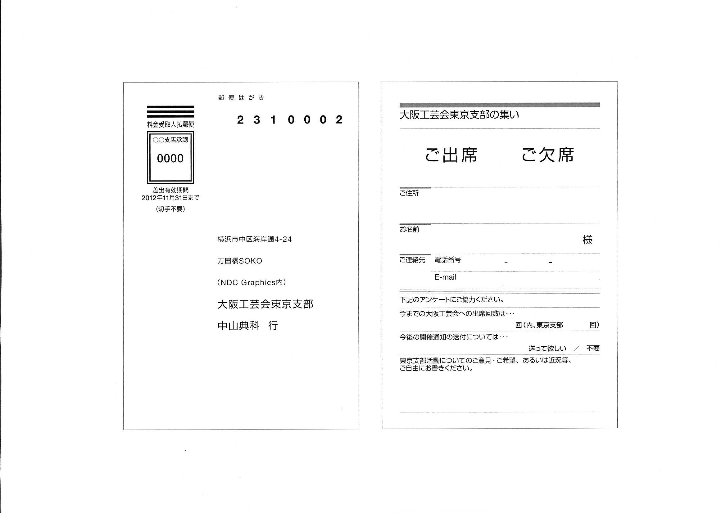 出欠 出席のご返事は10月31日(水)までに添付のはがきの要領で記載頂くか、
