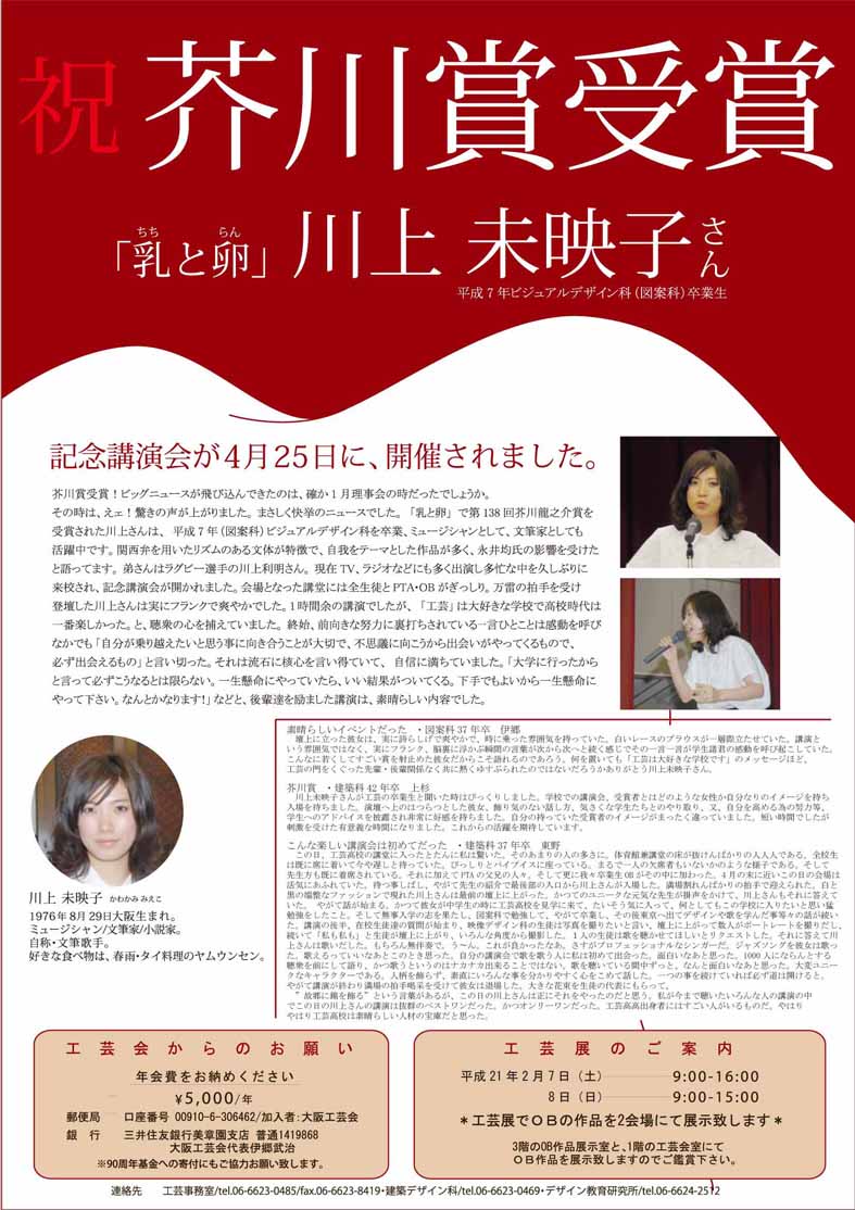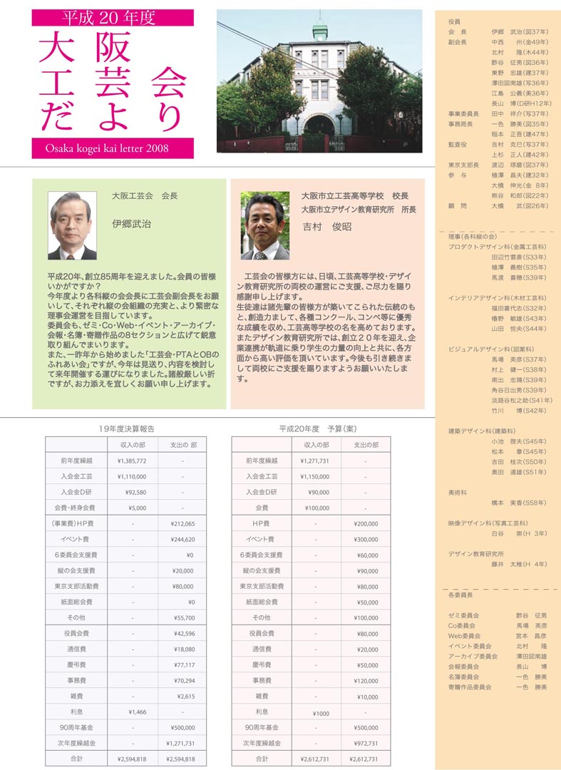 中尾(プロダクトデザイン科)各氏にお願いし、その以外の皆さんからも名乗り出て頂きたいのです。ホームページの更新や、運営も会議サイトでメールで回したいと思っていますのでよろしくお願いします。