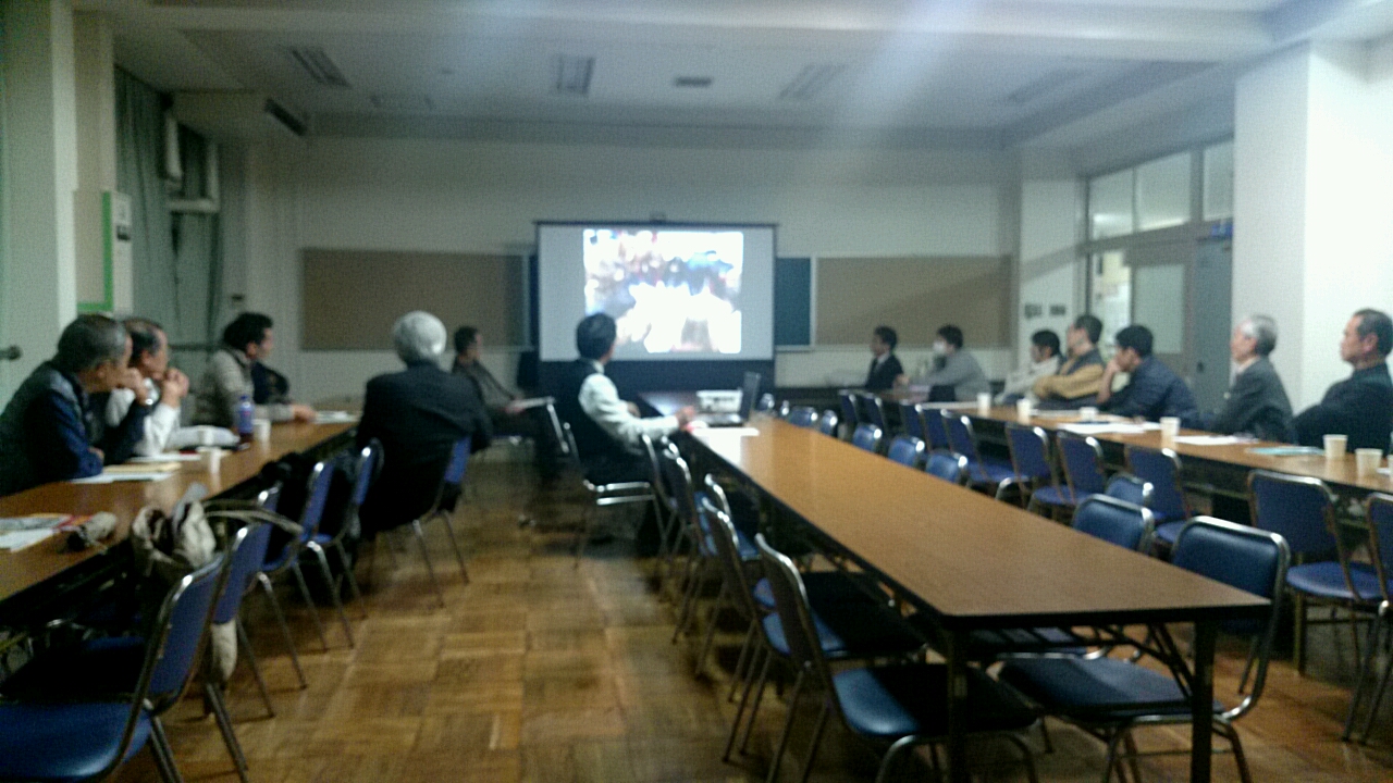プロジェクターを使用して平嶋先生よりイタリア研修についての報告